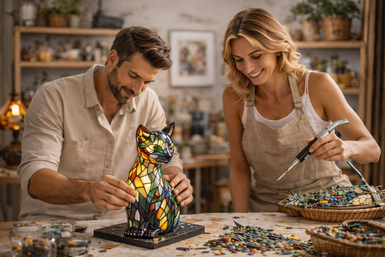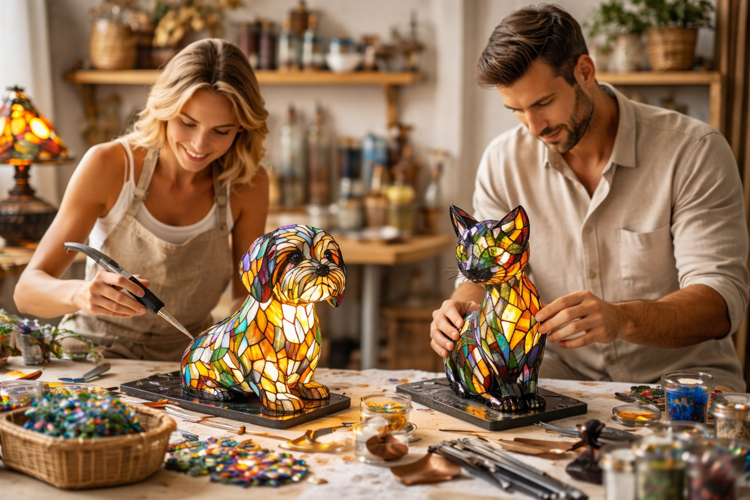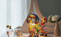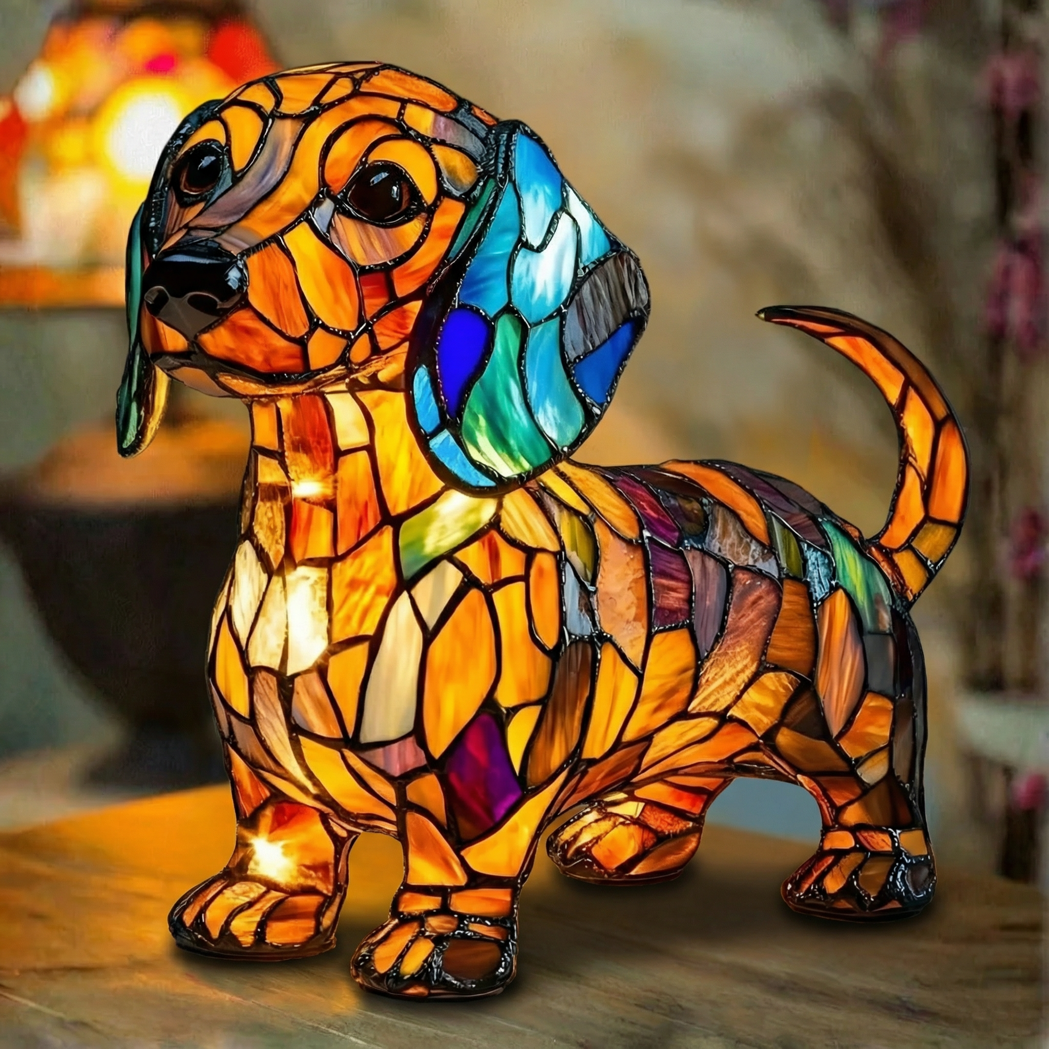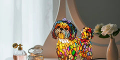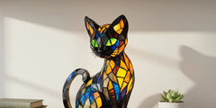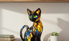 Lampa Mistična mačka je savršen dodatak za svakoga tko želi oživjeti svoj prostor. Njezin dizajn s živim bojama iz vitraža stvara veselu, odvažnu i jedinstvenu atmosferu. Lampa isijava blagu i umirujuću svjetlost koja svaki kutak pretvara u elegantno i ugodno mjesto.
